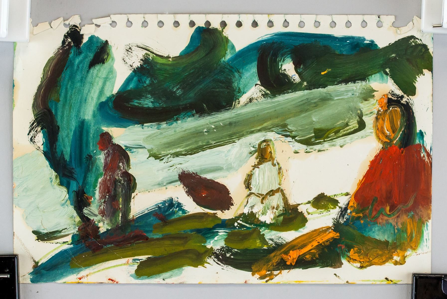 Oil on paper. Featuring a landscape composition scene. Stamped on verso inscribed MADGE A. CHILDLAW CERTIFIES THIS TO BE AN ORIGINAL BY HER HUSBAND PAUL Childlaw. Attributed to Paul Childlaw (1900-1989, American). 14 x 21.5 cm (5.5 x 8.5 inches). PROVENANCE: This lot carries little provenance form a Private American collection (Los Angeles)