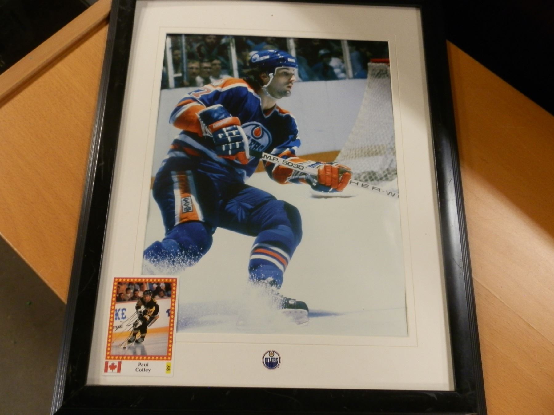 Paul Coffey Edmonton Oilers Photo, also comes with a signed hockey card of himself when he play for the Pittsburgh Penguins.....