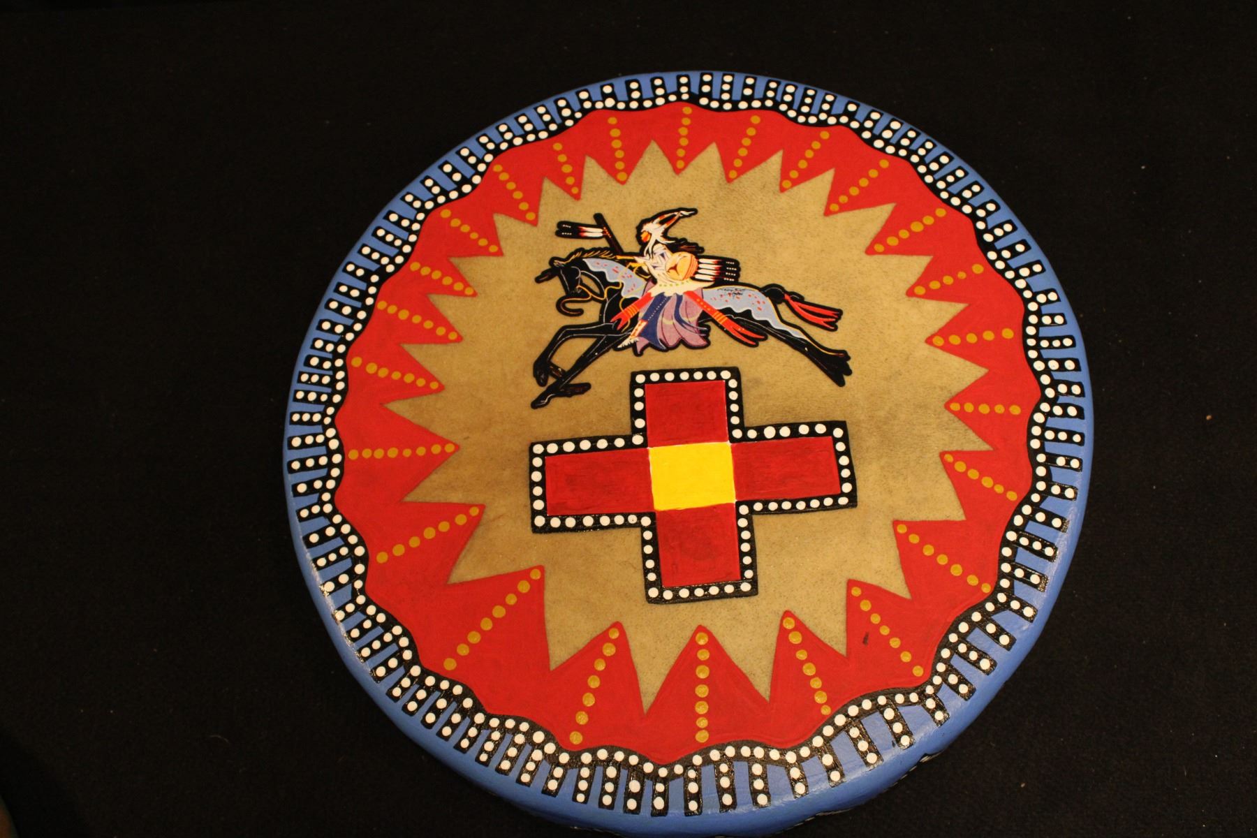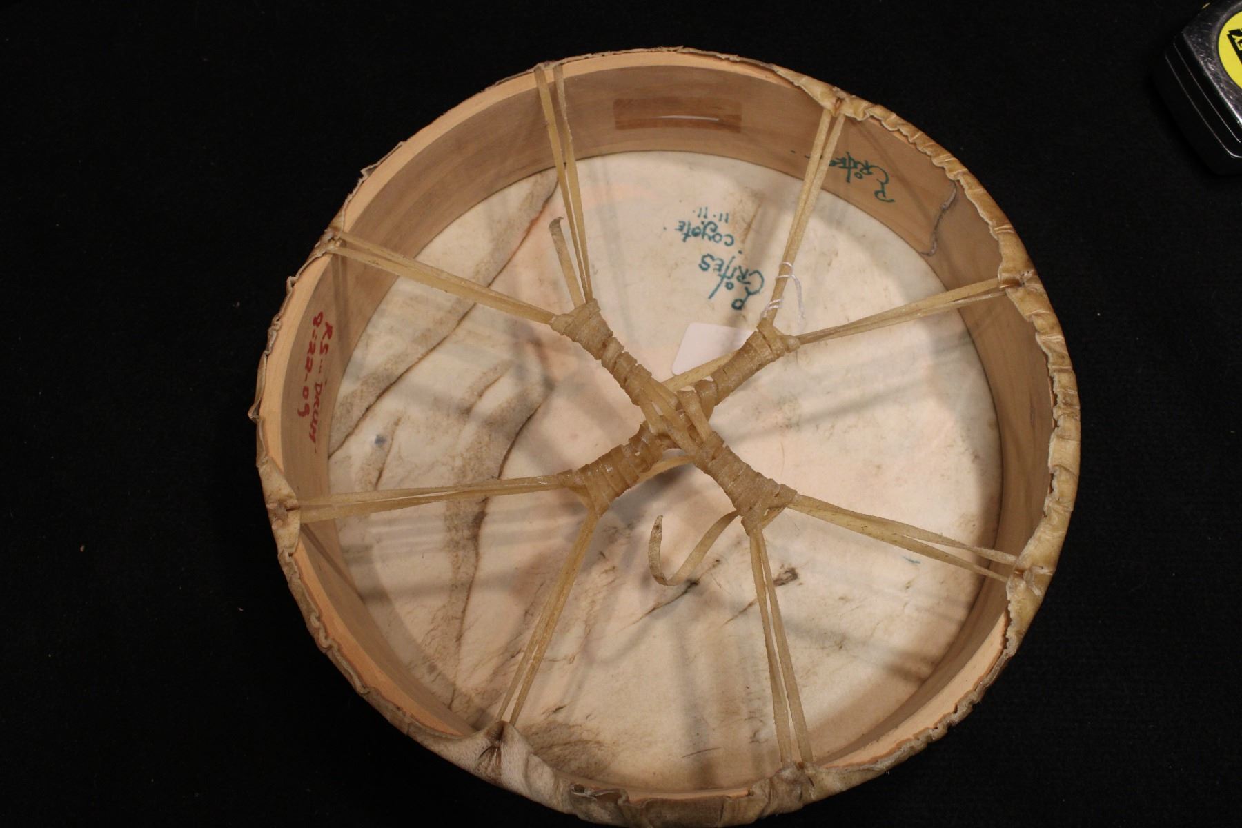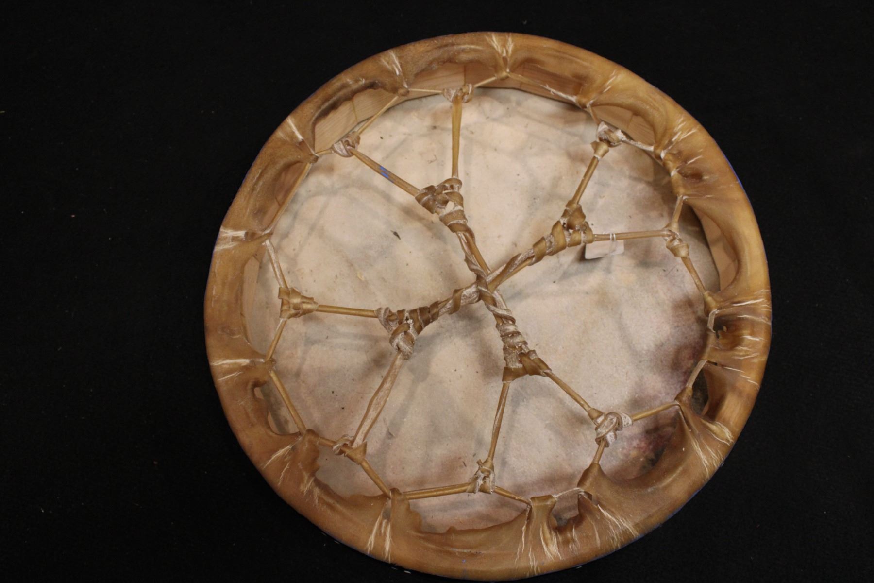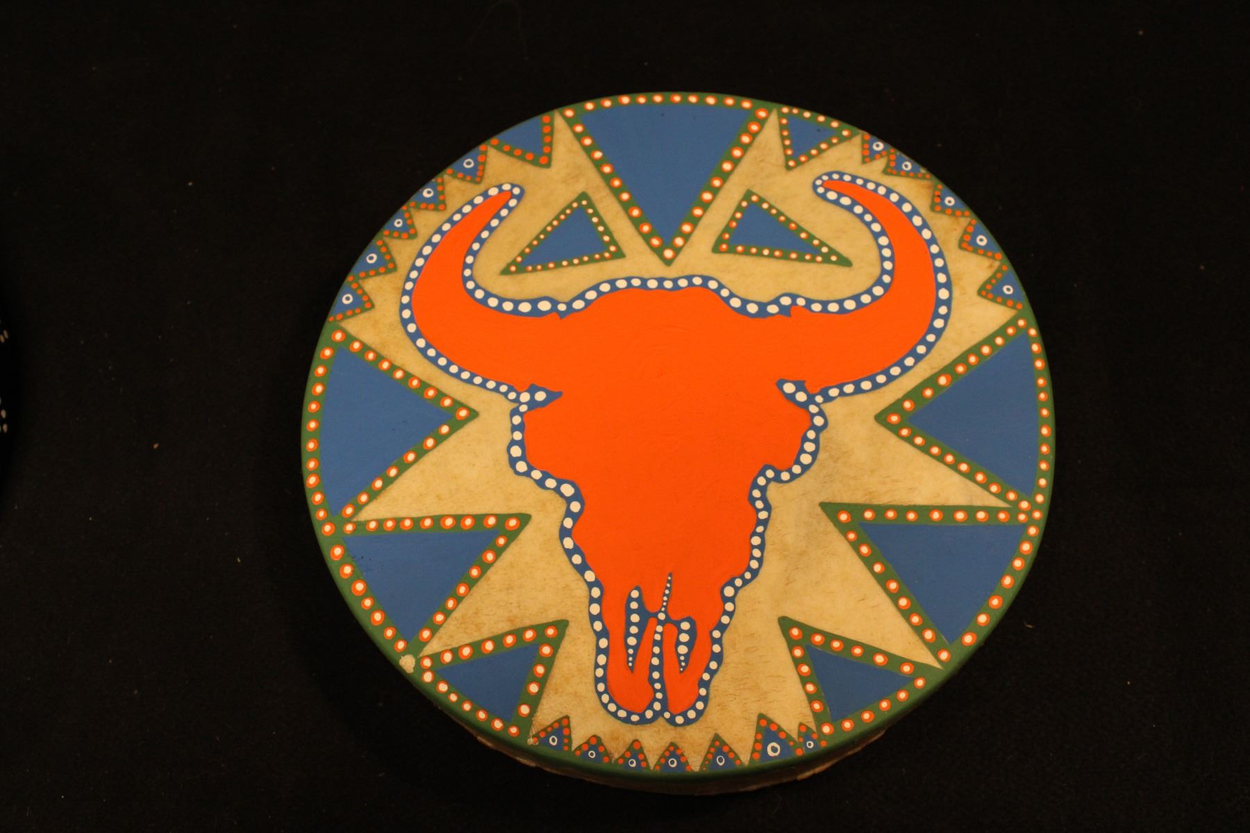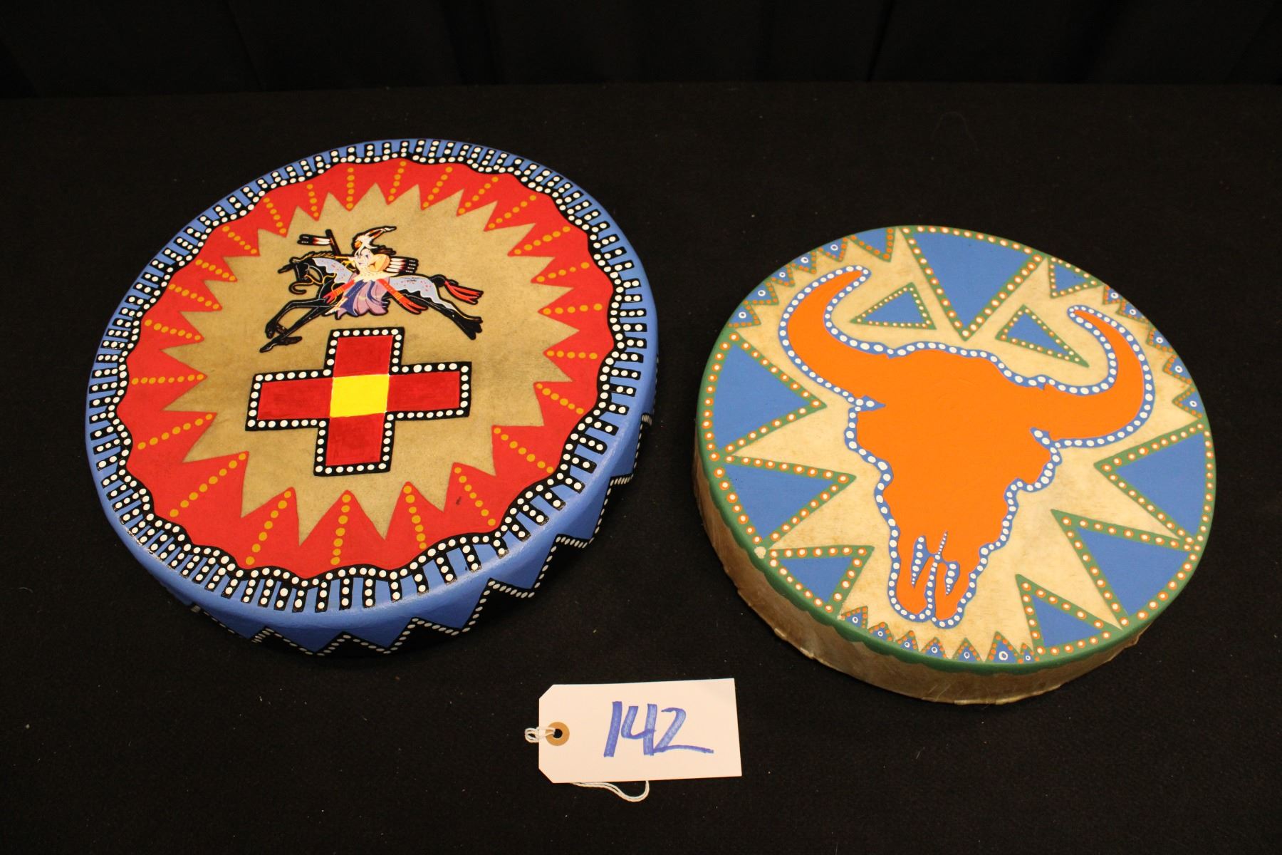 Lot of two painted drums. 21st century. 15" diameter. 13" diameter