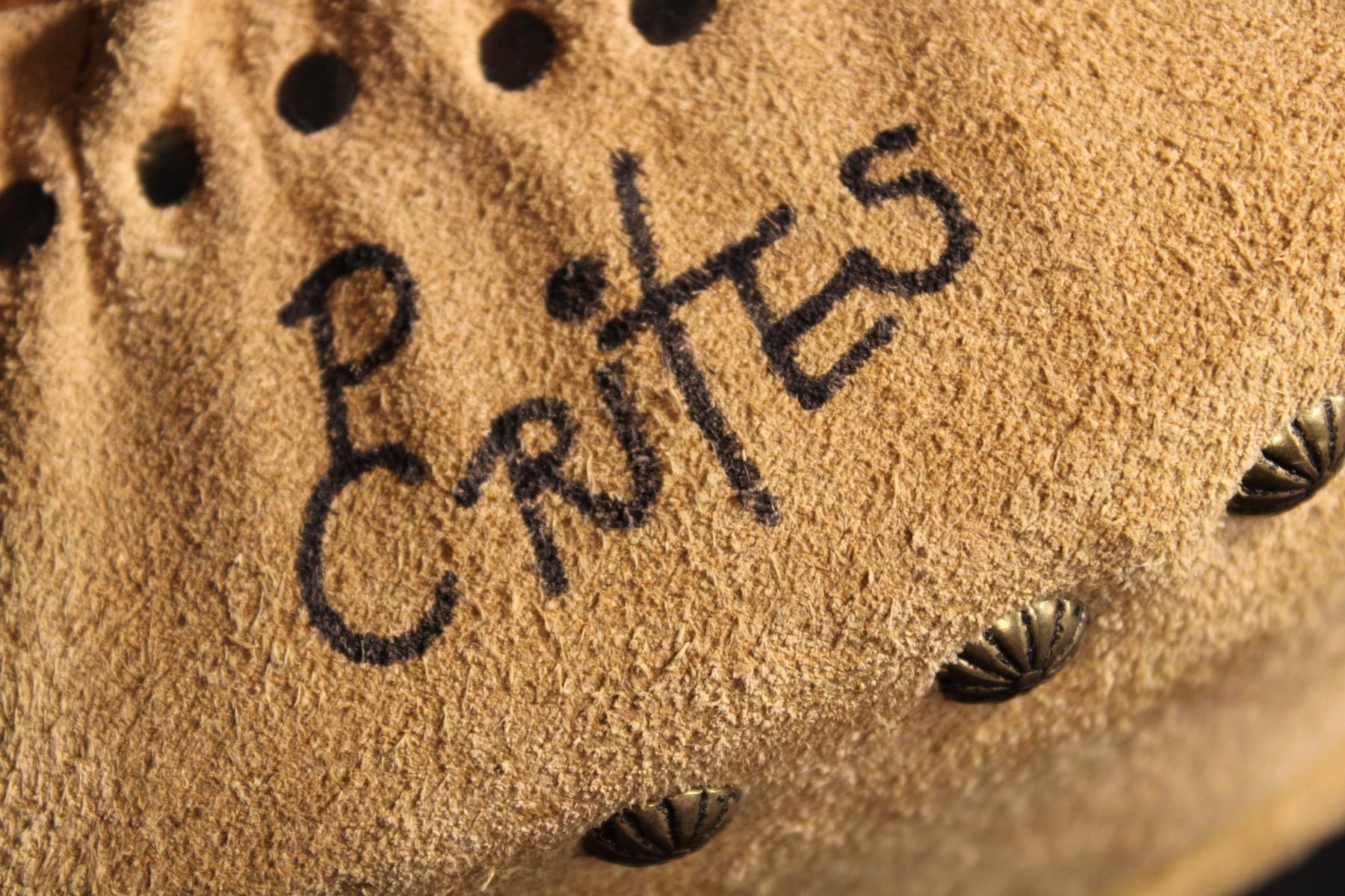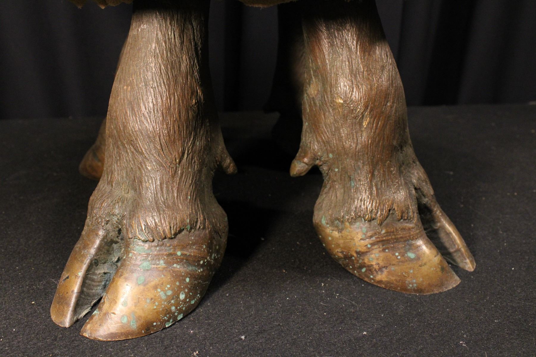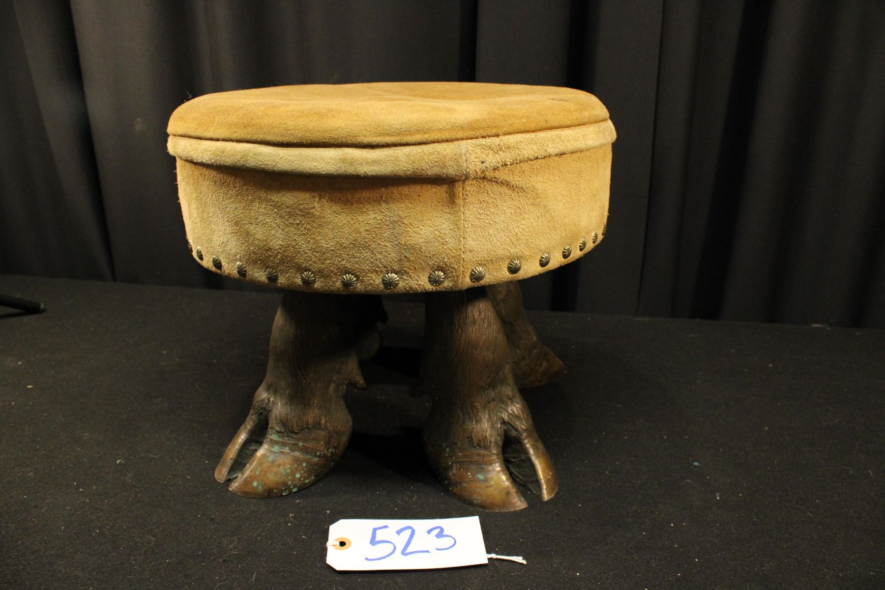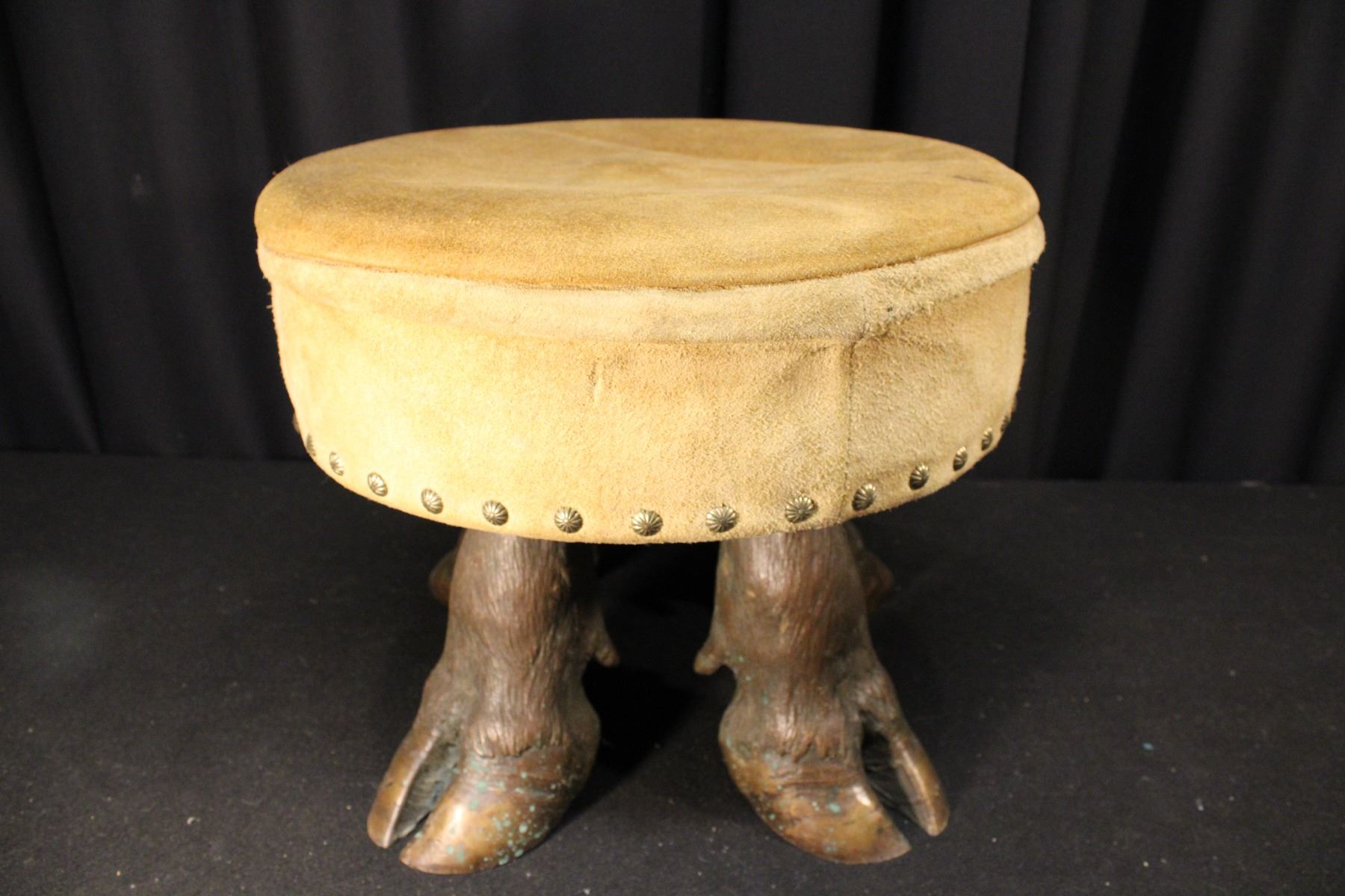 Foot stool w/ cast bronze steer hoof feet. Suede seat