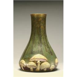 of mallet shape, painted in colours and gilt with an encircling forest glade with toadstools, restored, base cracks, ht. 10.6” — 26.8 cm., impressed numerals, printed mark in puce