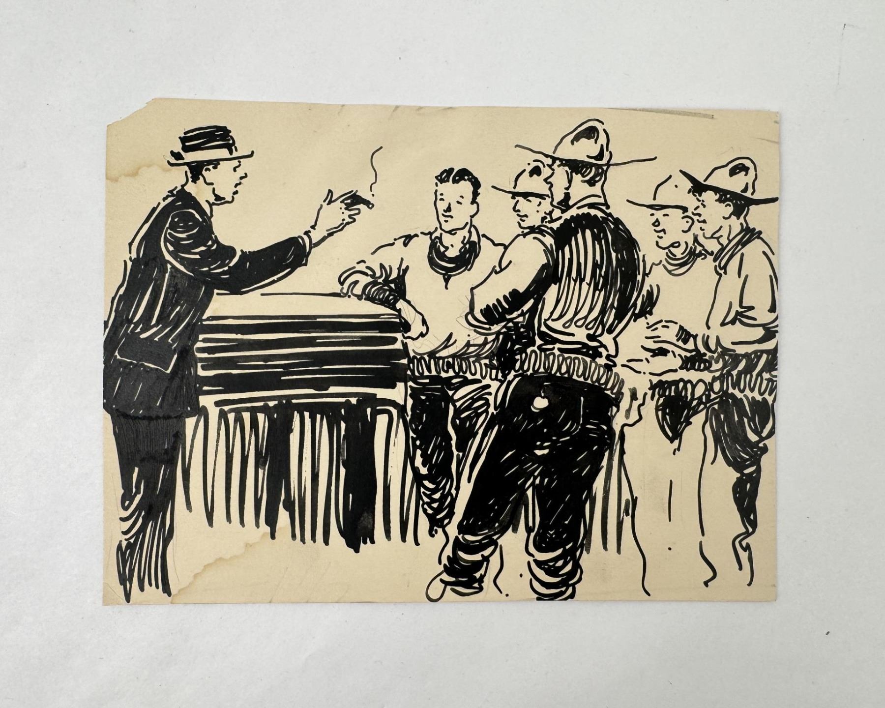 7" by 5 1/4" Born in Mapleton, Minnesota, Paul Brown became a noted book and magazine illustrator and also an etcher and drawing specialist. He was the author and illustrator of thirty-three books including Aintree, Spills and Thrills, Hits and Misses, and Crazy Quilt, and illustrated over 100 books by other authors. His specialty was horses, which he began to draw at the age of six. He continued to study them, sketching at polo matches and horse races, until he could draw them without models. Brown also did catalog and sporting illustration for Brooks Brothers from 1920 for nearly forty years.