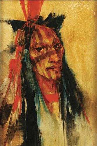 Paul Dyck (1917-2006). "Indian Brave". 12" x 8". Oil on Panel. (est $1,000-2,000).