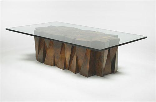 Paul Evans Faceted coffee table Paul Evans Studio for Directional USA, c. 1970 walnut burl, glass 60 w x 36 d x 16 h inches
