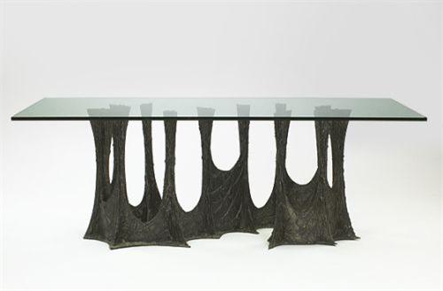 Paul Evans Stalagmite dining table, #PE-102 Paul Evans Studio for Directional USA, c. 1977 bronzed resin over steel, glass 84 w x 44 d x 29 h inches Paul Evans gave this table to the former director of the Directional showroom at the Merchandise Mart in Chicago. Provenance: Gift from the artist Private collection, Illinois