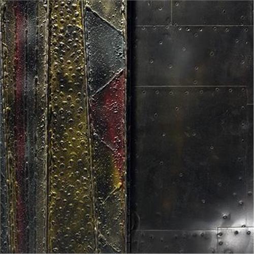 welded and enameled steel, slate and lacquered wood
