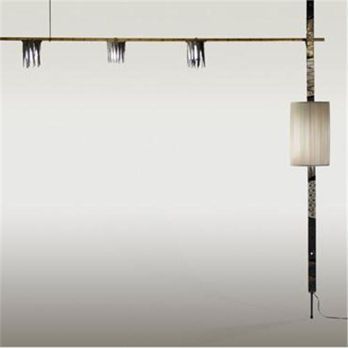 Paul Evans<BR>floor lamp<BR>Paul Evans Studio<BR>USA, c. 1965<BR>cut, welded, patinated and gilt steel, silk<BR>105 w x 12 d x 109.5 h inches<BR>Literature: <BR><i>Phillip Lloyd Powell</i>, studio catalog, unpaginated illustrates variation of Paul Evan's lamp<BR><BR>Condition of the item is not included in this description. Condition reports are available from Wright upon request. Wright strongly recommends that you review a condition report for each item on which you plan to bid.
