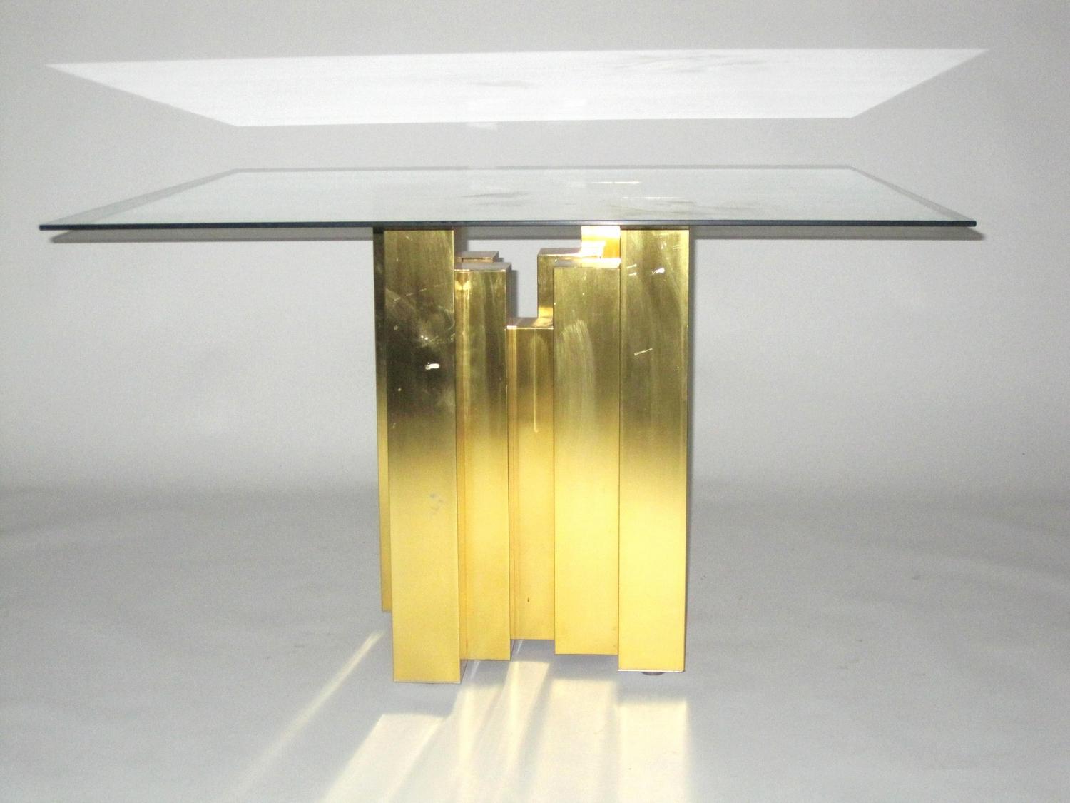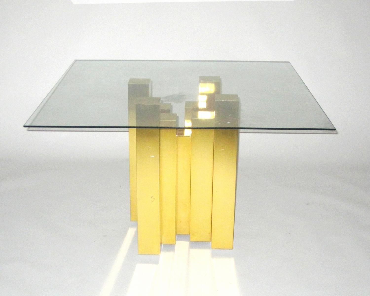 22h x 15w x 15d inches, sculptural brass base, glass top