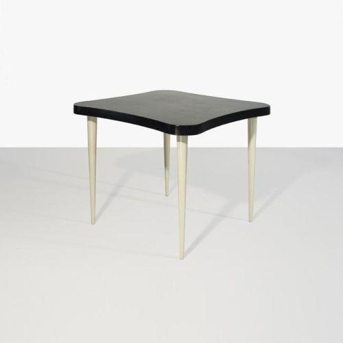 29h x 34w x 34d inches, white painted wooden legs, leather top, in original vintage very good condition