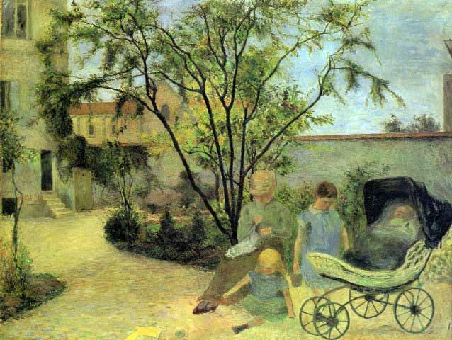 Artist: Paul Gauguin - Title: Garden in Rue Carcel - Medium: Fine Art Reproduction Giclee on Canvas - Image Size: Approximately 15 inches x 20 inches - Unframed on Unstretched Canvas - Biography: French post-impressionist artist Paul Gauguin was an important figure in the Symbolist art movement of the early 1900's. His use of bold colors, exaggerated body proportions and stark contrasts in his paintings set him apart from his contemporaries, helping pave the way for the Primitivism art movement. Gauguin often sought exotic environments and spent time living and painting in Tahiti.