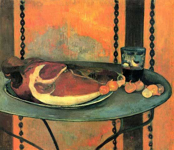 Artist: Paul Gauguin - Title: The Ham - Medium: Fine Art Reproduction Giclee on Canvas - Image Size: Approximately 17.25 inches x 20 inches - Unframed on Unstretched Canvas - Biography: French post-impressionist artist Paul Gauguin was an important figure in the Symbolist art movement of the early 1900's. His use of bold colors, exaggerated body proportions and stark contrasts in his paintings set him apart from his contemporaries, helping pave the way for the Primitivism art movement. Gauguin often sought exotic environments and spent time living and painting in Tahiti.