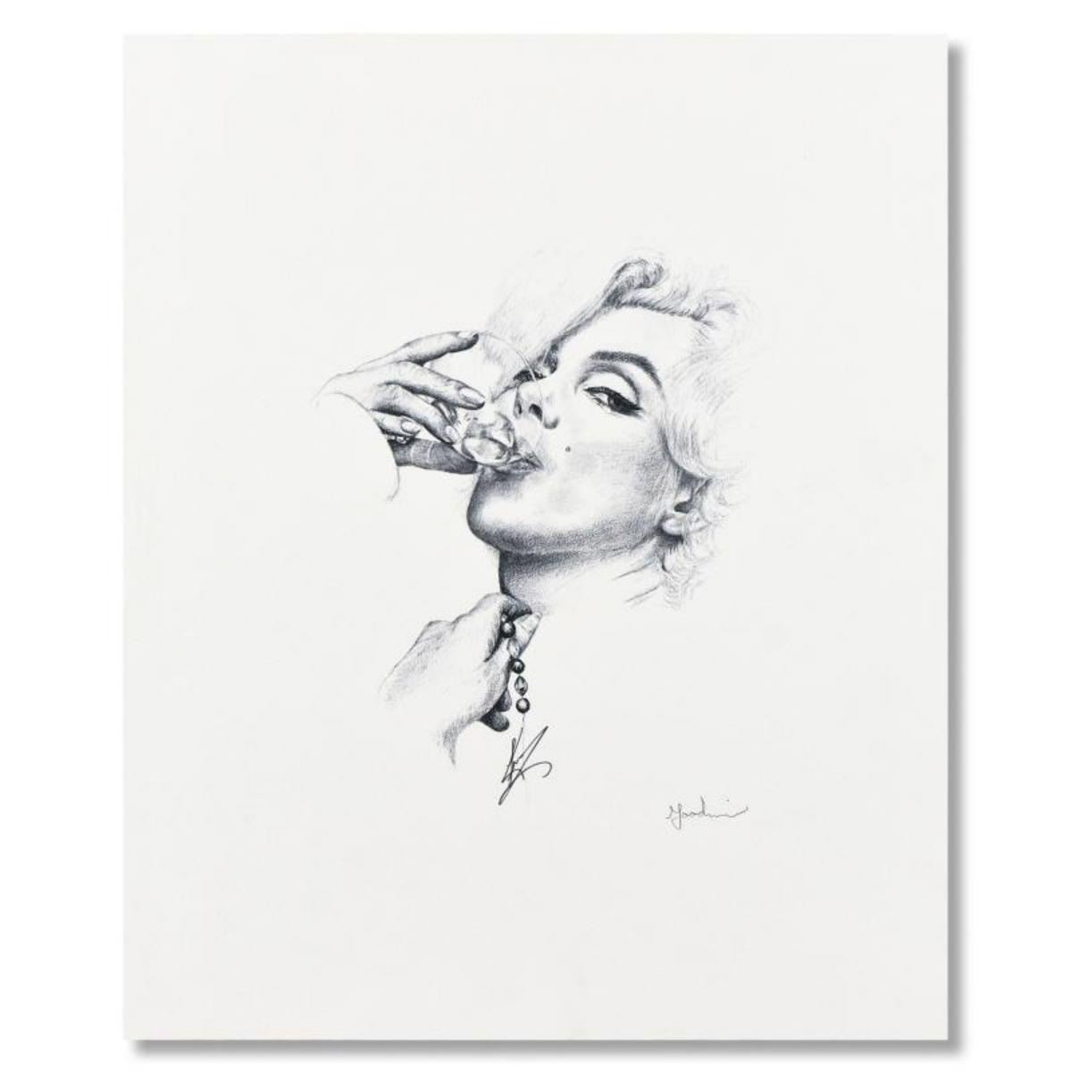 "Merry Merry Marilyn" is a limited edition lithograph by Paul Goodwin, numbered and hand signed by the artist. This piece is based on the 1962 photograph shot by Bert Stern. Includes Letter of Authenticity. Measures approx. 16" x 20" (image). Reference #: 253115