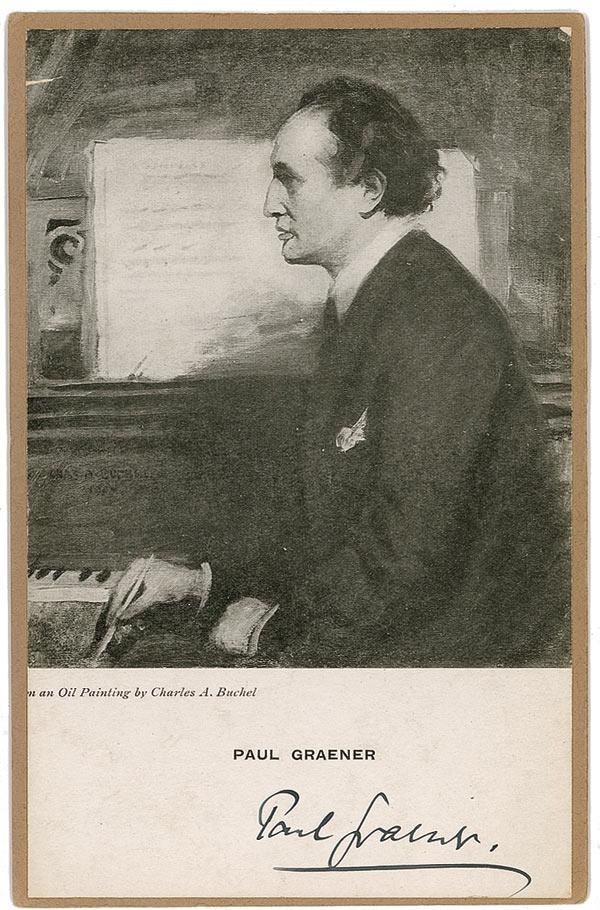 German composer and conductor (1872–1944). A 4.25 x 6.5 magazine image of Graener at the piano, signed in fountain pen. Affixed to a slightly larger piece of cardboard. In fine condition, with a couple of creases and light surface wear.