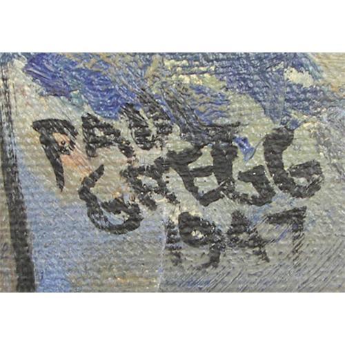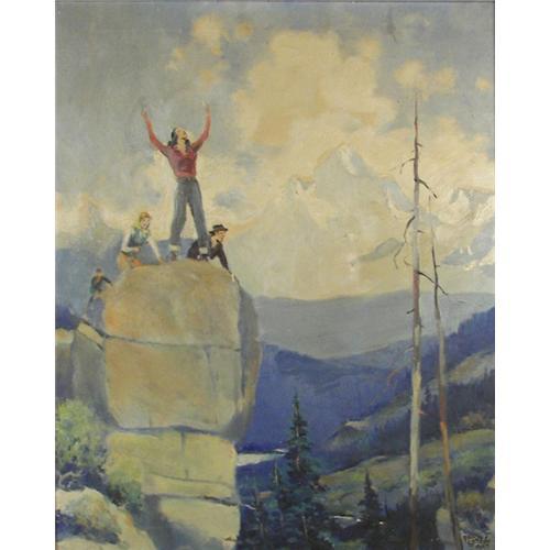 Paul Gregg (1876-1949) Oil on Canvas, Hikers, 1947, 27" x 22", signed lower right, notation on stretcher "Denver Post, Aug 17 issue", condition: some inpainting, needs cleaning