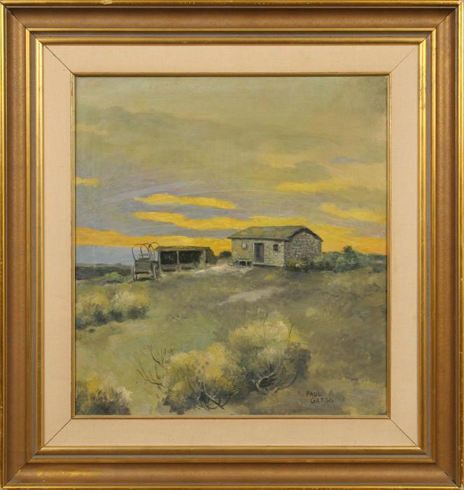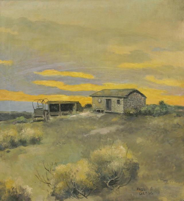 Paul Gregg (1876-1949). Building Boom, 1860. 24" x 22" oil on canvas. titled and dated 1939 on verso. signed lower right. Condition Report: Black lights clean.