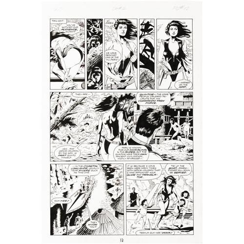 <B>Paul Gulacy - James Bond 007: Serpent's Tooth #2, page 13 Original Art (Dark Horse, 1992).</B></I> Sunny leads Bond deep into the South American jungle to the village of the Quintos, in this page from the second part of this thrilling three-part story. Paul Gulacy delivers the pencils and inks to this Paul Gulacy story. The image are measures 10" x 15" and the condition is Excellent. <BR><BR><B>Important notice:</B> Heritage usually auctions material at the rate of 200-250 lots per hour. On some occasions eBay Live bid software or the Internet may not be able to keep up with the pace of the auction. We recommend placing a realistic absentee bid now as insurance to avoid disappointment. Occasionally the auctioneer may eliminate or reject an eBay Live bid, and the auctioneer may also reopen a lot after the close of the eBay live bidding (usually because we missed an audience bid), and may reject your bid even if it shows you as the winning bidder. By bidding via eBay Live, you agree that Heritage may award the lot to another bidder at its sole discretion under the circumstances described above or any other reasonable circumstances. Since eBay bids are not shown to us until we open the lot on the floor, we treat those bids just like floor bids. In most cases the floor responds before the eBay bid is presented to us, due to Internet lag time, so for consistency we have made it a policy that floor bids are always considered first over tie eBay live bids. Also please note that all Heritage lots purchased through eBay Live carry a 22.5% Buyer's Premium. Please make sure you read the Terms and Conditions before you bid. This lot is being auctioned in conjunction with a live floor auction by Heritage Auction Galleries. All final auction and invoice information will be supplied by Heritage Auction Galleries, and all other information should be considered preliminary. Lot:41001 <BR><BR><B>Winning Notification and Billing:</B> After the FINAL session in this auction is complete, Heritage will send e-mail and snail mail invoices. This process normally takes several days. All final auction and invoice information will be supplied by Heritage Auction Galleries, and all other information should be considered preliminary. <BR><BR>This auction will be conducted on a live auction floor and over the Internet through eBay Live. If you choose to place an absentee bid, please take a moment to <font color='#0000ff'><u><a href='http://pages.ebay.com/liveauctions/help/before/laabsentee.html'>learn how eBay Live absentee bidding works</a></u></font><font color='#000000'>