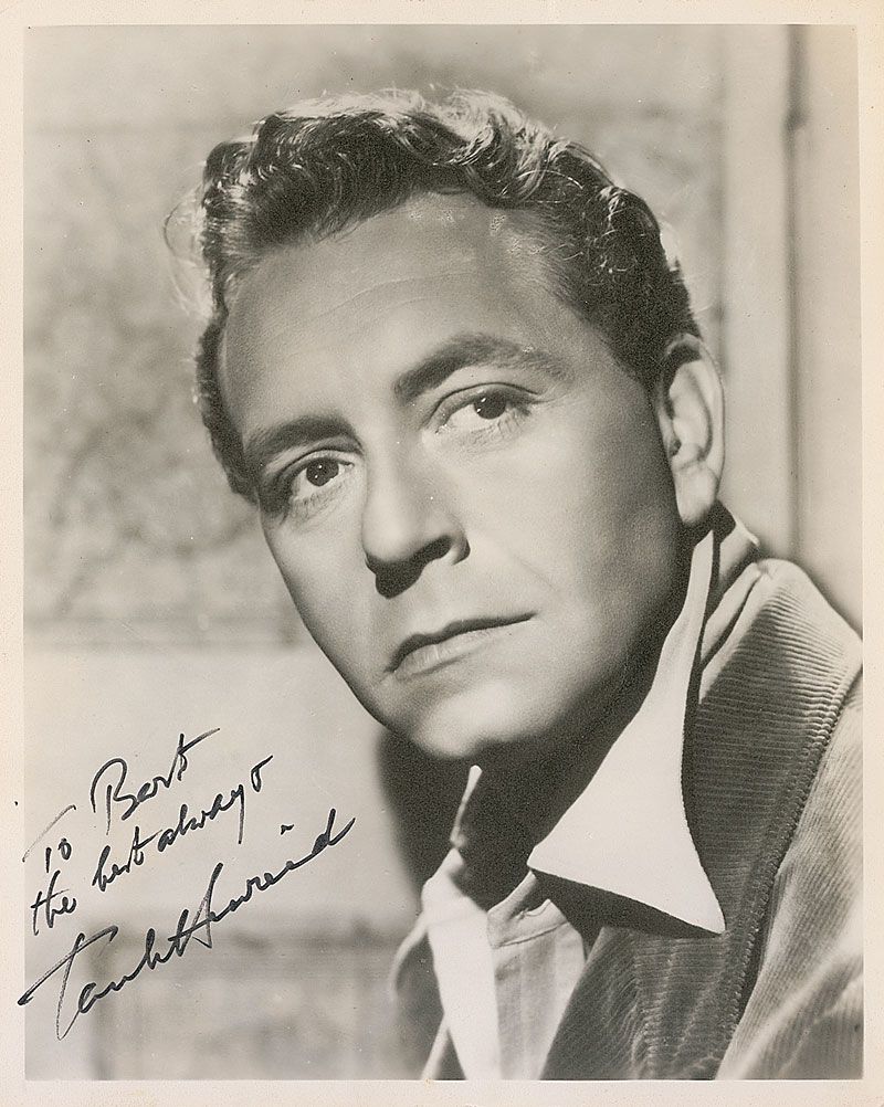 Matte-finish 8 x 10 head-and-shoulders photo, signed and inscribed in black felt tip, “To Bert, the best always, Paul Henreid.” In fine condition, with some light ripples and creases along top edge.