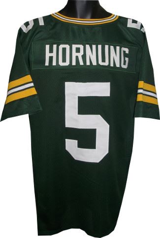 After graduating from Notre Dame with a degree in business, Paul Hornung was the first selection overall in the 1957 NFL Draft. He was taken by the Green Bay Packers, with whom he would go on to win four league championships, including the first ever Super Bowl in January 1967. As a pro, Hornung was one of the most versatile players in the history of the game, playing the halfback position as well as being a field goal kicker for several seasons. Hornung led the league in scoring for three straight seasons from 1959-61. Considered by many to be the best short-yardage runner to ever play the game, Hornung was twice voted the league’s MVP and was chosen as an All-Pro twice and named to the Pro Bowl twice. He is one of only five players to have won both the Heisman Trophy and the NFL's Most Valuable Player Award.This is a Paul Hornung Green Bay Packers unsigned Green TB unlicensed custom-prostyle jersey with twill stitched nameplate and numbers. perfect for autograph or to wear! Size XL