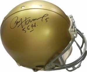 Paul Hornung could do it all. After a college career at Notre Dame in which he excelled at both basketball and football, the 1956 Heisman Trophy winner entered the NFL and quickly made his mark with the Green Bay Packers. Hornung put up big stats as a running back, receiver, kicker and occasional passer over the years and earned numerous awards, including NFL Player of the Year honors in 1960 and 1961 and enshrinement in the Hall of Fame in 1986. Paul Hornung has hand signed this Notre Dame Fighting Irish Full Size Authentic Helmet with 56H inscription. Certificate of Authenticity from Athlon Sports.