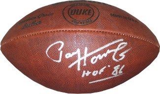 After graduating from Notre Dame with a degree in business, Paul Hornung was the first selection overall in the 1957 NFL Draft. He was taken by the Green Bay Packers, with whom he would go on to win four league championships, including the first ever Super Bowl in January 1967. As a pro, Hornung was one of the most versatile players in the history of the game, playing the halfback position as well as being a field goal kicker for several seasons. Hornung led the league in scoring for three straight seasons from 1959-61. Hornung was twice voted the league’s MVP and was chosen as an All-Pro twice and named to the Pro Bowl twice. He is one of only five players to have won both the Heisman Trophy and the NFL's Most Valuable Player Award. Paul Hornung has hand autographed this Official NFL Duke Throwback Football with HOF86 inscription. Photo of the signing, RS Hologram and Certificate of Authenticity from Athlon Sports.