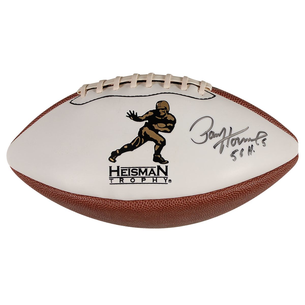 Official Baden commemorative Heisman Trophy football signed in black felt tip on the white panel “Paul Hornung, 5, 56H.” In fine condition.