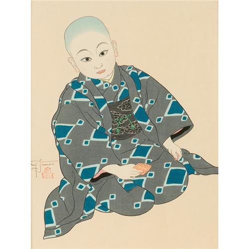 Paul Jacoulet woodblock, colorful print titled Kiyoshi, signed,11in.x 15in., matted, framed