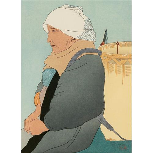 Paul Jacoulet woodblock, colorful print titled Vielle Marchande, signed, 11.25in.x 15in., matted, framed