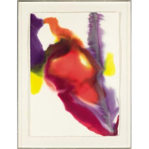 <B>PAUL JENKINS (American, b.1923)</B></I><BR><I>Phenomena Oracle Whisper</B></I>, 1983<BR>Watercolor on paper<BR>43 x 31 inches (109.2 x 78.7 cm)<BR>Signed lower right: <I>Paul Jenkins</B></I><BR> <BR>This lot is accompanied by the book: A. Elsen, <I>Paul Jenkins</B></I>, New York, 1974.<B>Condition Report:</B> Overall very good condition, "floating" in a lucite frame<BR><BR><b>Shipping:</b> Requires 3rd Party Shipping (<a target="_blank" href="http://www.heritageauctions.com/common/shipping.php">view shipping information</a>)
