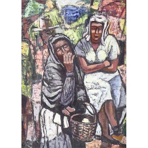 8154 Paul K. Smith (1893-1973) Oil on Board "Two Women" Estate Stamp Verso 16" x 12"