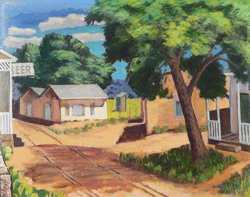 Paul Kauvar Smith (1893 - 1973) Oil on Board "Village Street, New Mexico" Signed Verso 16" x 20"