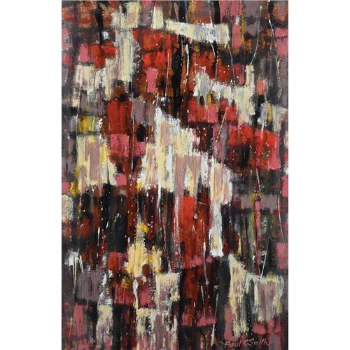 Paul K. Smith (1893-1973), Oil on Canvas (Laid on board), Abstract, 22" x 15", Red/Black, Signed lower right.