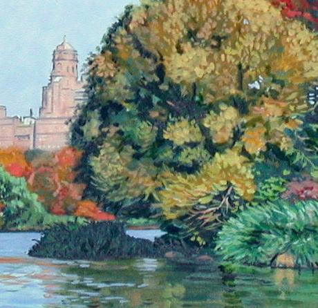 A typical Fall scene in Central Park by the NY born creative realist who specializes in New York scenes. 18”x24” oil on board, signed by the artist. Nicely framed as illustrated. A Certificate of Authenticity will accompany this work. Domestic shipping and packing-$175, International depends upon location.