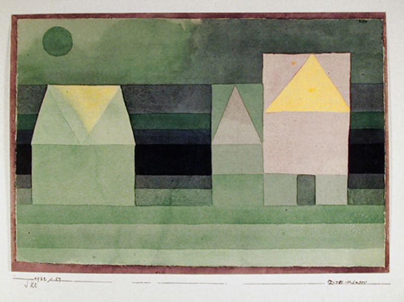 Paul Klee, Drei Hauser Grun-violette Stufung, Pochoir