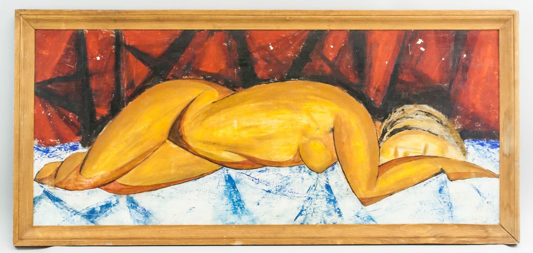 Oil on board, framed. Featuring a nude woman. Signed KLEE on the lower right corner. Attributed to Paul Klee (1879-1940, German). 41 x 96 cm (16 x 37.5 in), Frame: 47 x 102 cm, 18.75 x 40.25 in). Provenance: This lot carries limited provenance from a Southern Ontario estate