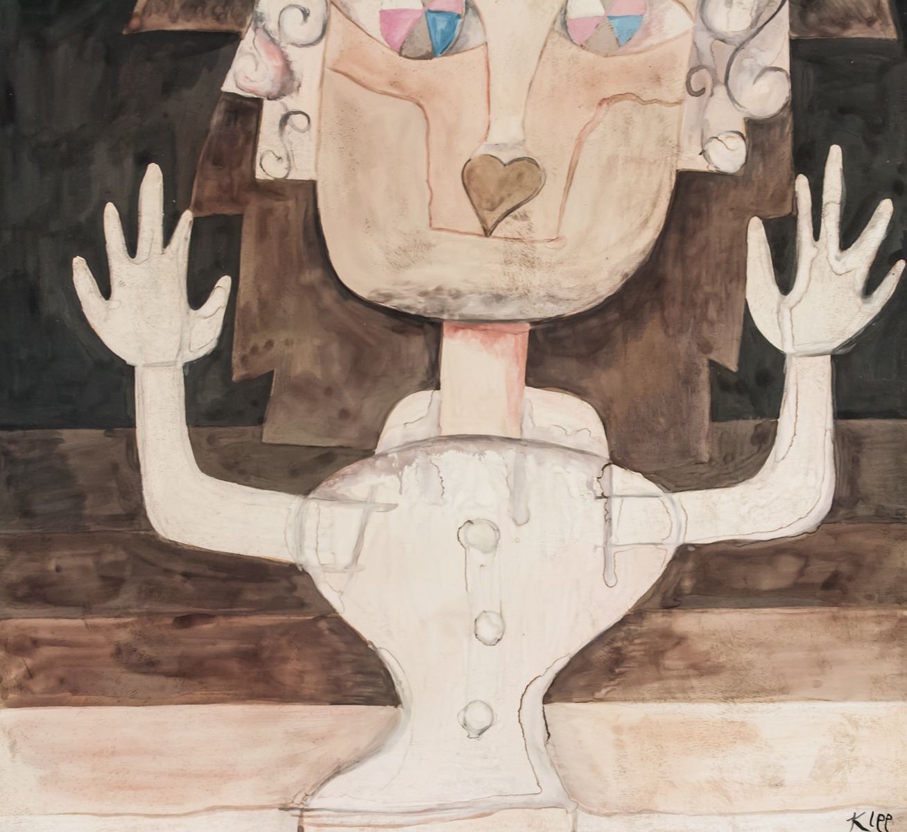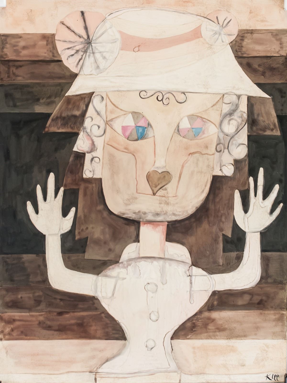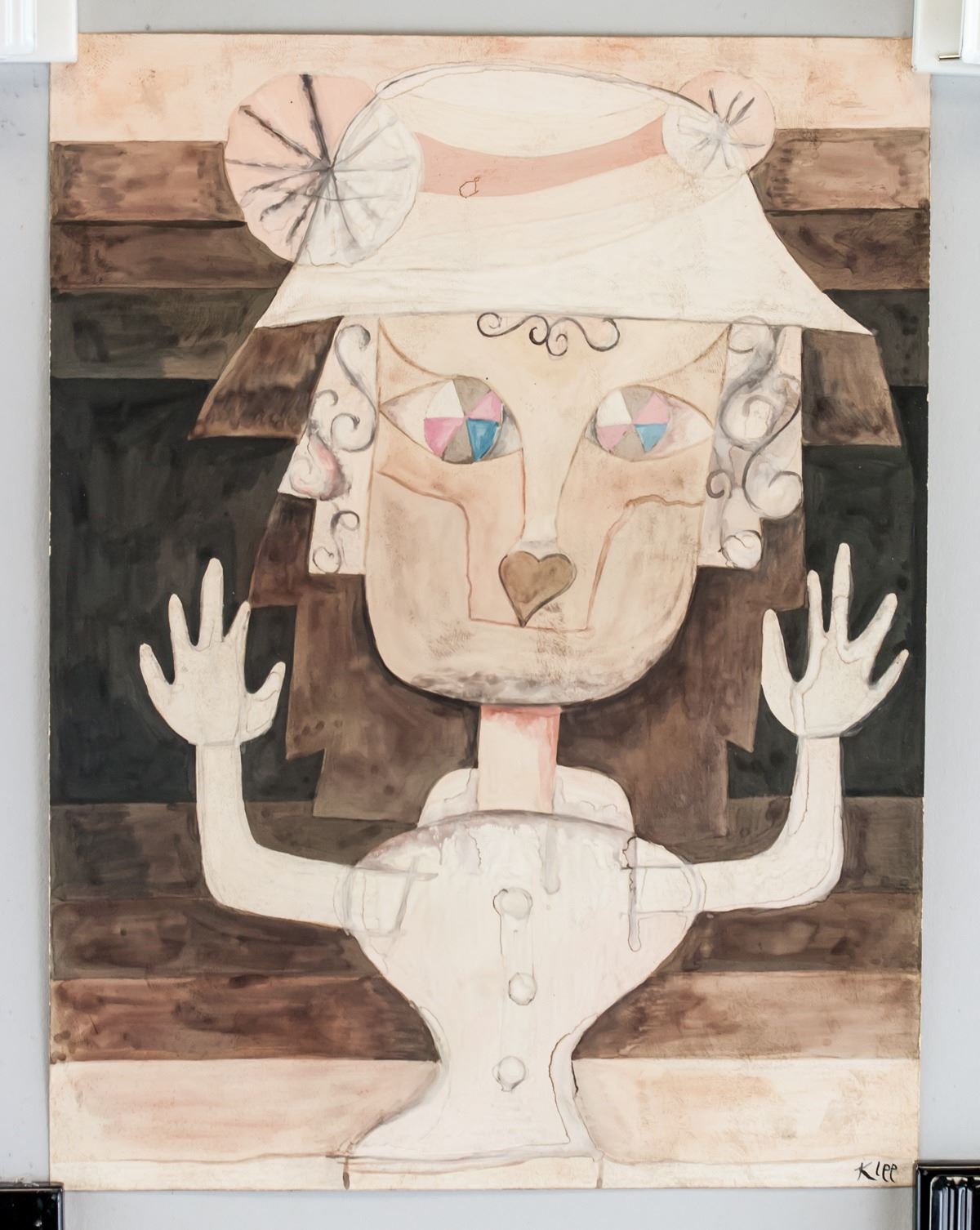 Tempera on paper. Featuring a portrait of a woman with a hat. Signed Klee on the lower right corner. Attributed to Paul Klee (1879-1940, Swiss). 26.5 x 20 cm (10.4 x 7.9 inches). PROVENANCE: Southern Ontario estate
