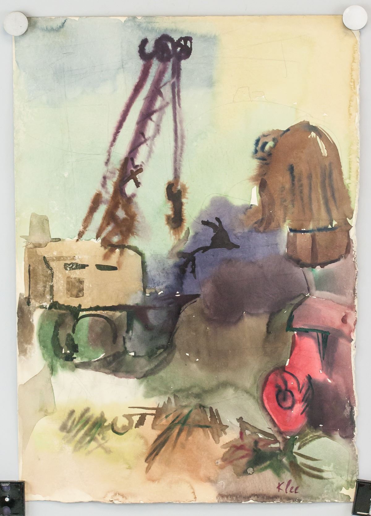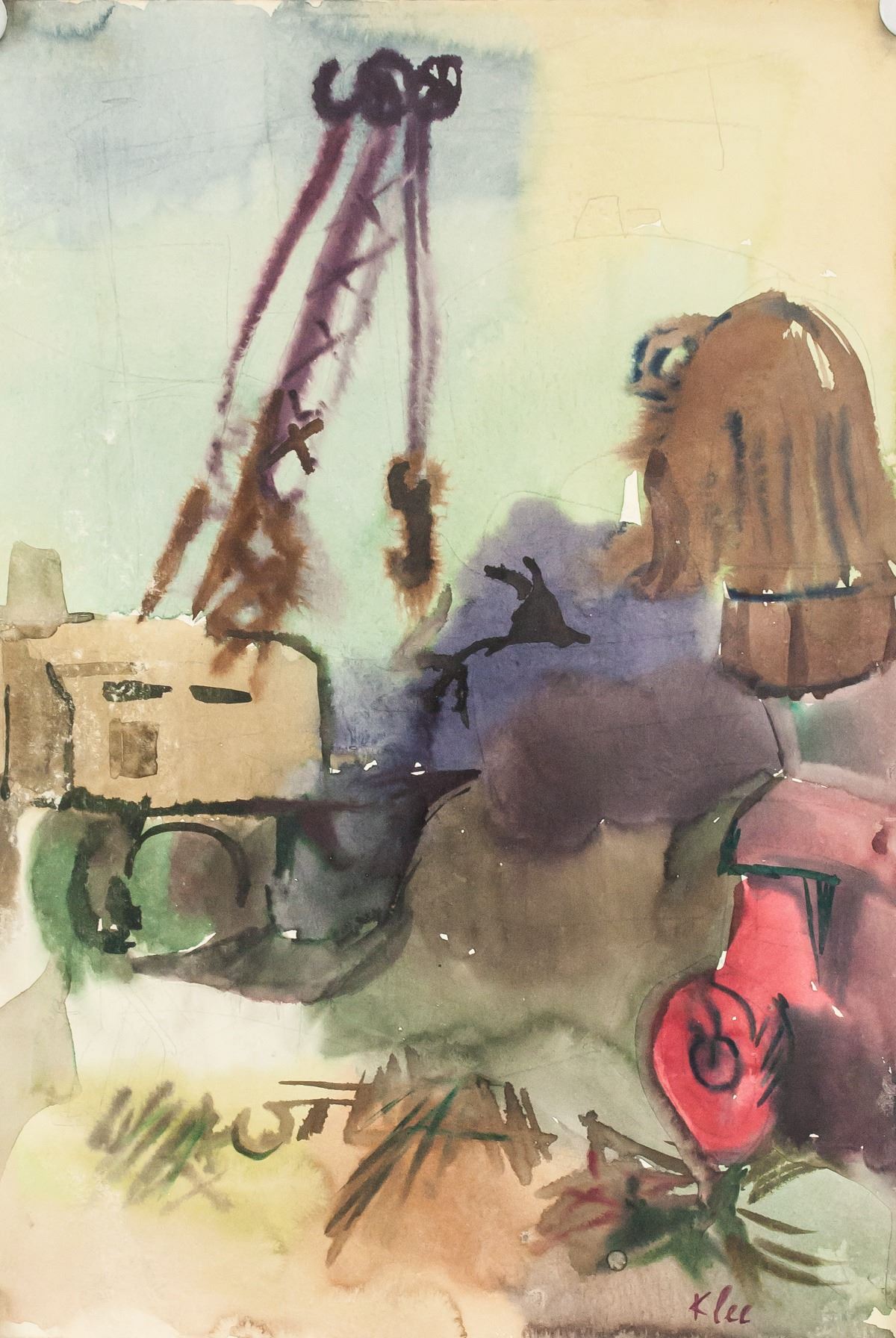 Watercolor on paper. Featuring a landscape scene with crane. Signed Klee on the lower right corner. Attributed to Paul Klee (1879-1940, German-Swiss). 50 x 35 cm (19.5 x 13.5 inches). Provenance: This lot carries limited provenance from a Southern Ontario estate