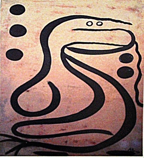 Oil on paper in the manner of Paul Klee "The Snake", circa 1921, private collection, unframed dimensions approximately 17x12. in the manner of Paul Klee, (born Dec. 18, 1879, Münchenbuchsee, near Bern, Switz.—died June 29, 1940, Muralto, near Locarno) Swiss painter who was one of the foremost artists of the 20th century.