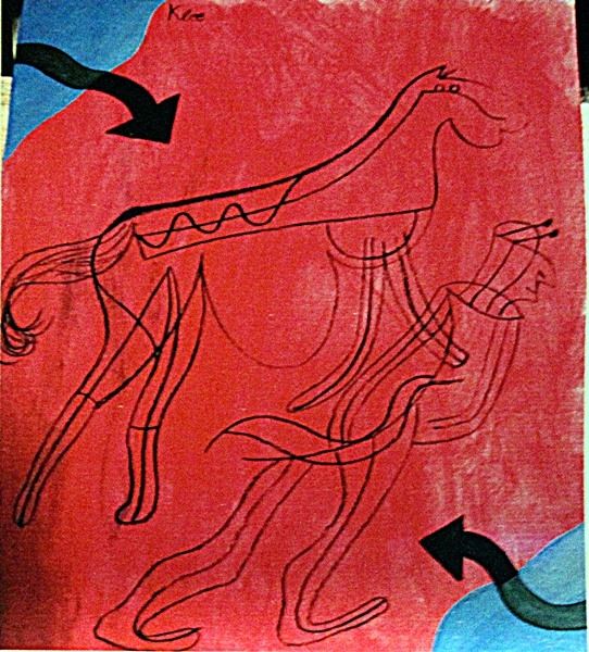 Oil on paper in the manner of in the manner of Paul Klee "The Way", circa 1905, private collection, unframed dimensions approximately 17x12. in the manner of Paul Klee, (born Dec. 18, 1879, Münchenbuchsee, near Bern, Switz.—died June 29, 1940, Muralto, near Locarno) Swiss painter who was one of the foremost artists of the 20th century.