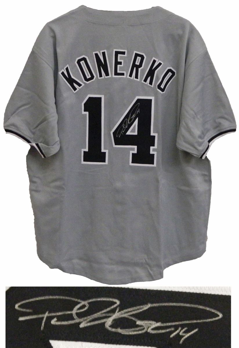 Paul Konerko signed grey custom baseball jersey. Item comes with a Schwartz Sports Memorabilia tamper-proof numbered hologram and Certificate of Authenticity which can be verified online.
