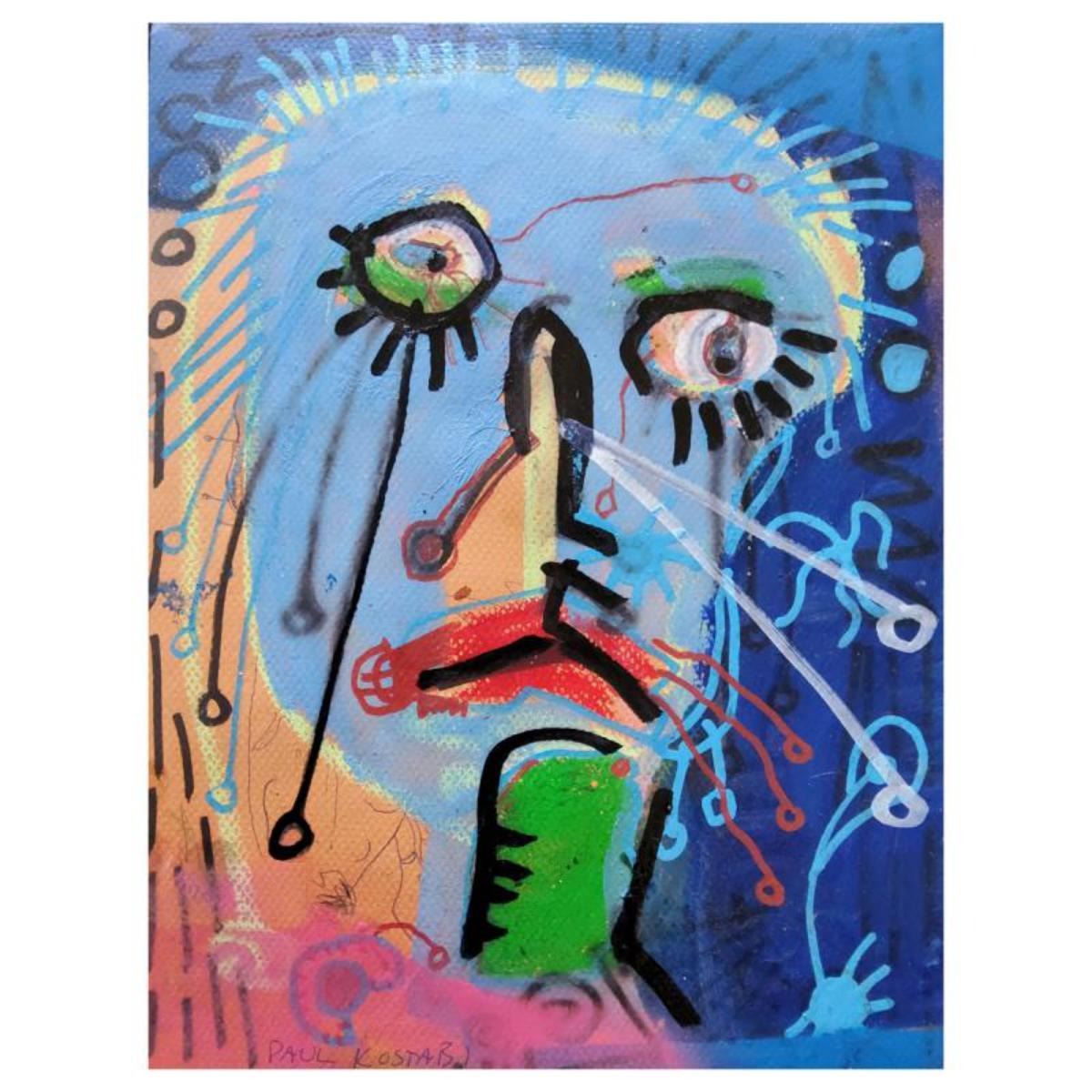 Paul Kostabi, "Cold and Blue" Hand Signed Original Painting with Letter of Authenticity.
