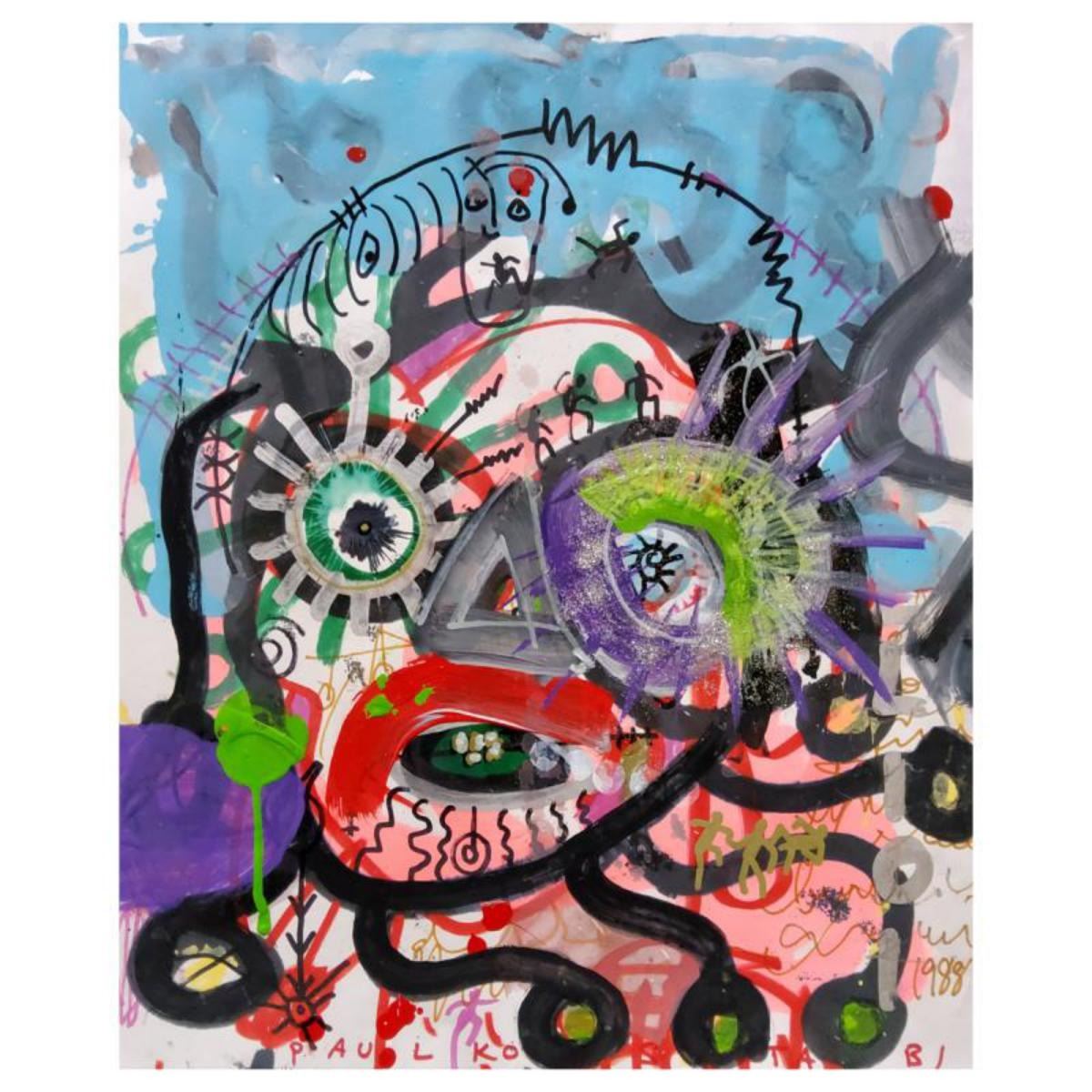 Paul Kostabi, "Phases and Stages" Hand Signed Original Painting with Letter of Authenticity.
