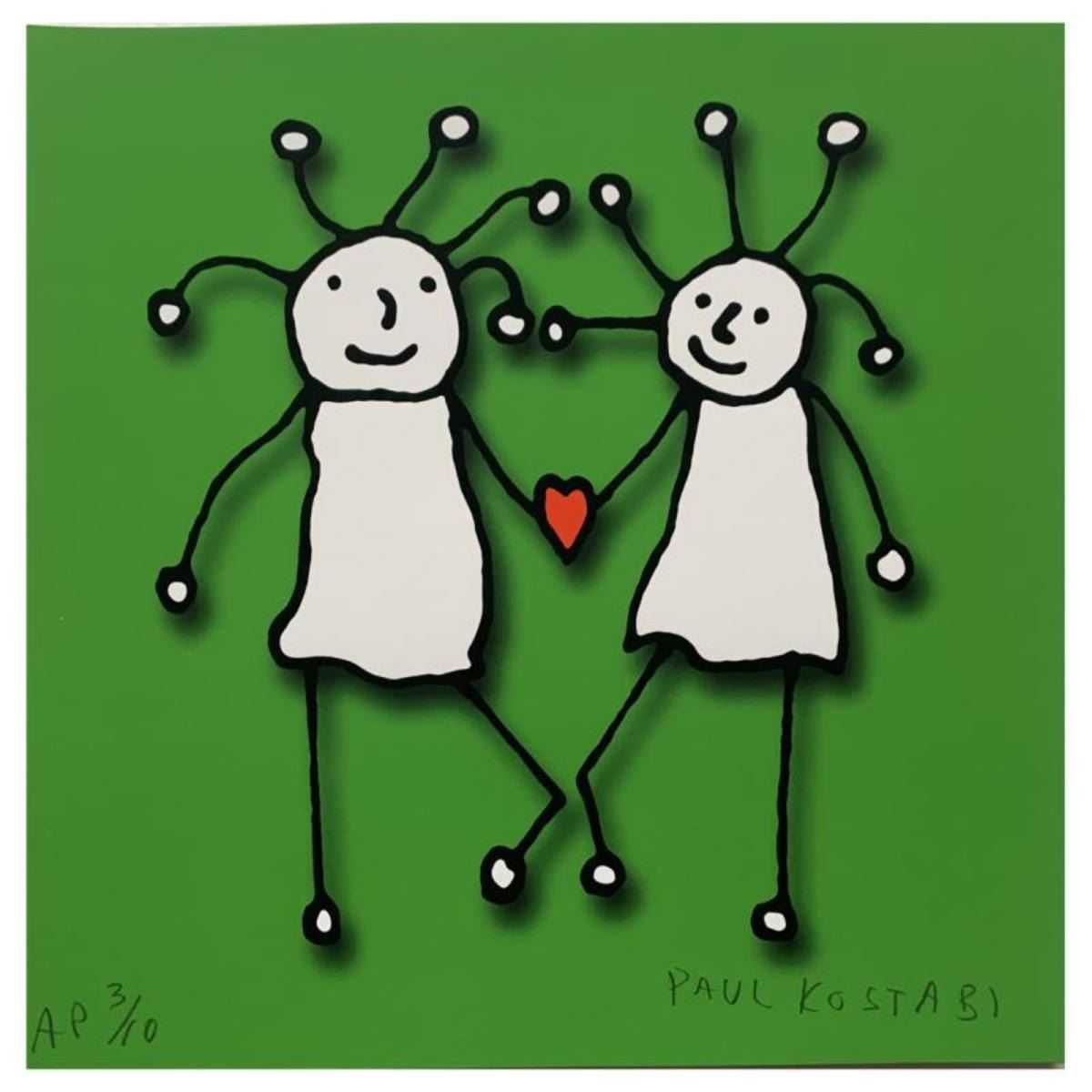 Paul Kostabi, "SPRKL Love (Green)" Hand Signed Limited Edition Giclee with Letter of Authenticity.