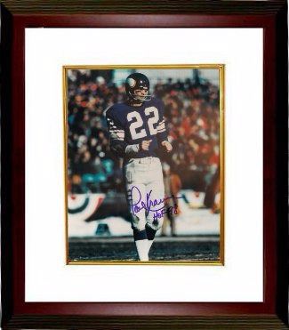 Paul Krause played defensive back for the Minnesota Vikings. He set the NFL record for interceptions with 81, which he picked off from 45 different quarterbacks, and was inducted into the Pro Football Hall of Fame in 1998. Paul Krause hand autographed Minnesota Vikings 8x10 Photo with HOF 98 inscription. Certificate of Authenticity from Athlon Sports. Custom White Mat and Premium Mahogany Frame as shown.