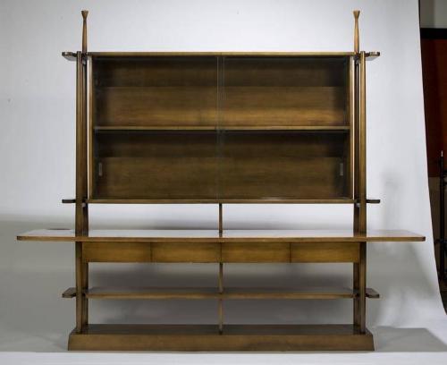 <b>Description: </b>Buffet with display cabinet ; Walnut with a “Maple” finish. Custom designed for the John M. Hudspeth Residence, 1951-52