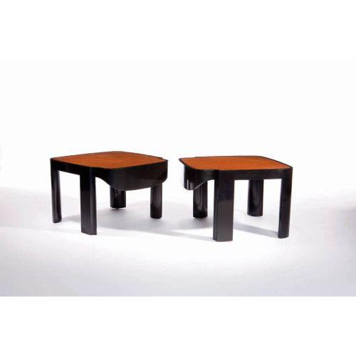 Artist Name: Paul Laszlo<BR>Manufacturer: Custom<BR>Description: Pair of side tables<BR>Circa: designed circa 1954<BR>Medium: Dark teakwood finish with inset leather top<BR>Signature: <BR>Measurements: Each 16"h x 23.5"square<BR>Edition: <BR>Notes: <BR>Li