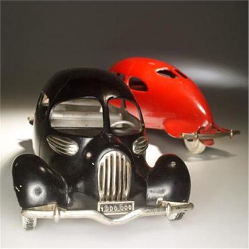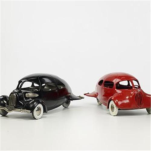In one innovative machine, the Airomobile incorporated American mid-century interests of invention, automobiles and economy. Conceptually comparable to the Volkwagen, its contemporary, Paul Lewis developed the teardrop-shaped car in 1937 with the aim of creating an affordable, well engineered family car. These models were constructed in a Colorado foundry, and perhaps used by Lewis to present the design to Carl Doman and Ed Marks of Doman & Marks, who went on to manufacture the full-sized functioning car in their Syracuse, New York factory. Despite some production difficulties, Lewis was dedicated to the overall form and the three-wheel design as they both idealized the streamline aesthetic. A singular example of the car was actualized and used by Lewis to promote the car around the country in hopes of obtaining dealers and individual buyers. Ultimately, the Airomobile did not flourish on the market, but Lewis design remains a unique contribution to the automotive industry and to American streamlined design.