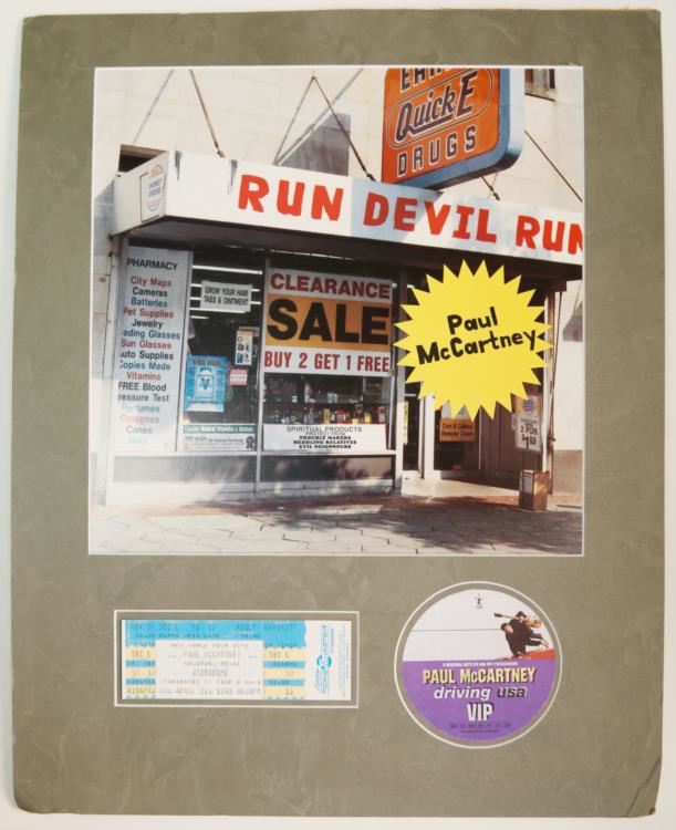 We have for sale a matted Paul McCartney 1999 Run Devil Run Poster with Backstage Pass and an unused concert ticket. This unique collage would make a wonderful addition to any Paul McCartney or Beatles collection.