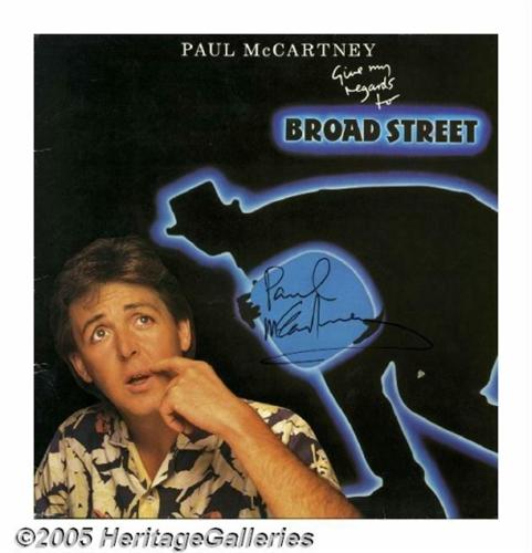 <B>Paul McCartney Autographed Album.</B></I> Featured in this lot is a copy of the soundtrack album for the movie "Give My Regards to Broad Street," signed by ex-Beatle Paul McCartney who plays himself in the movie, an exaggerated day-in-the-life tale. <I>With COA from PSA/DNA.</B></I>