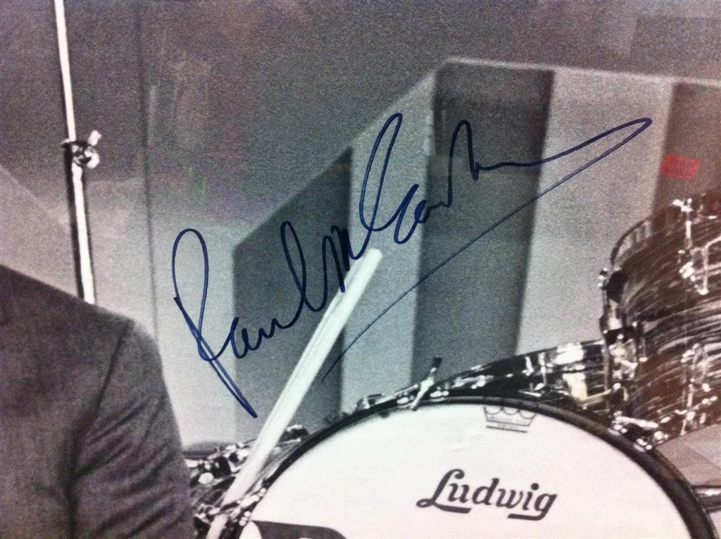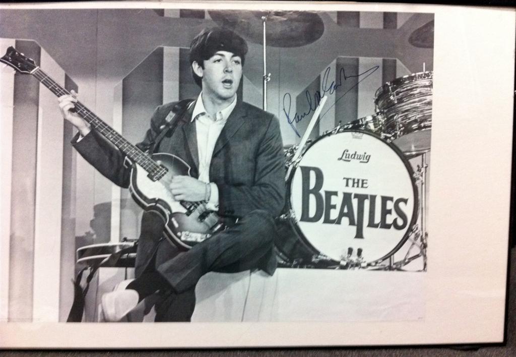 Paul McCartney Autographed Poster - A framed signed poster of a young Paul McCartney. Includes documentation. Poster: 33" x 20". Frame: 41" x 27". Oversized item. Additional shipping charges required.