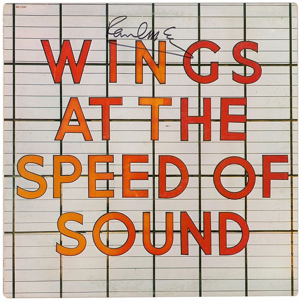 Wings at the Speed of Sound album signed on the front cover in black felt tip by Paul McCartney. In fine condition, with a few edge and corner tip creases. The record is included.
